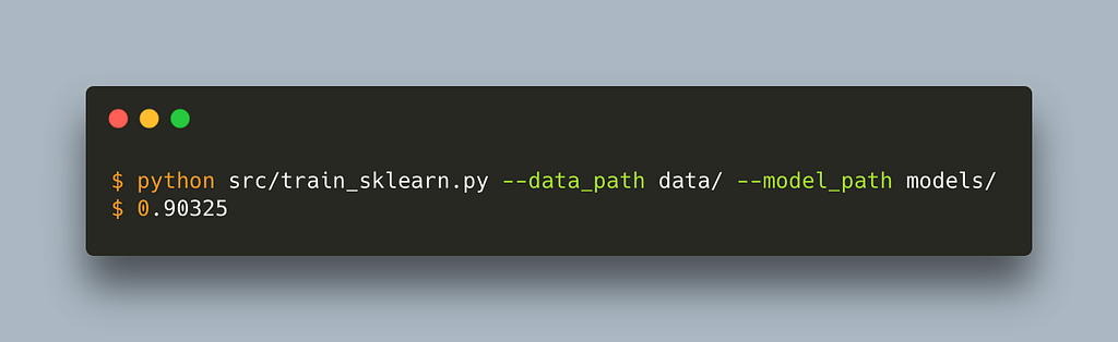 The script is vanilla sklearn. The only alteration for sagemaker is to set the default data_path and model_path. We can use this script outside sagemaker without any problem by passing a path to our data and models folder. Let’s run it